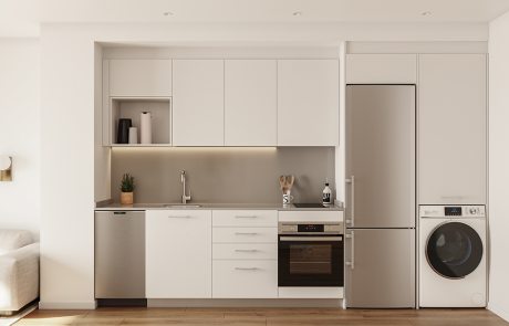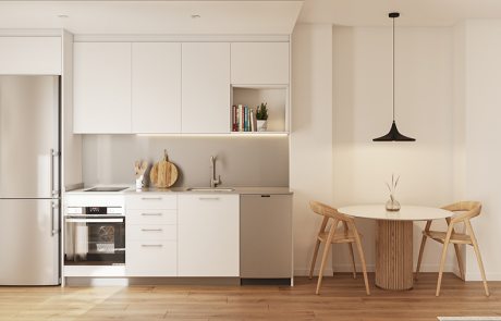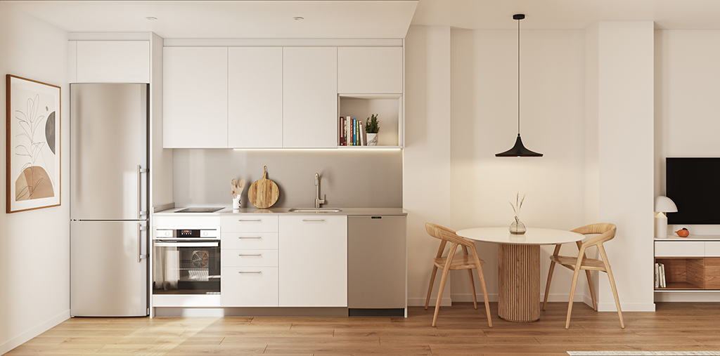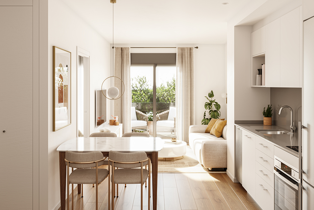 - Cuines equipades amb electrodomèstics de marques de primer nivell: campana extractora integrada, placa de cocció d’inducció i forn elèctric multifunció.
