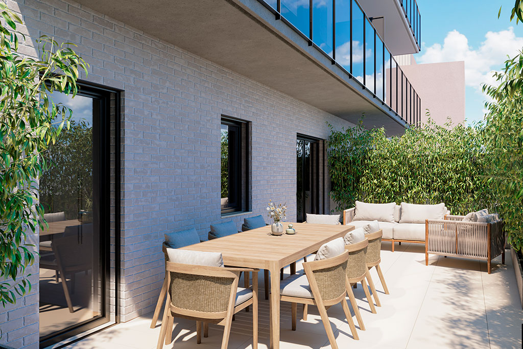 - Plantas bajas y dúplex con amplias terrazas, ideales para quienes valoran tener un espacio exterior privado para disfrutar del aire libre.